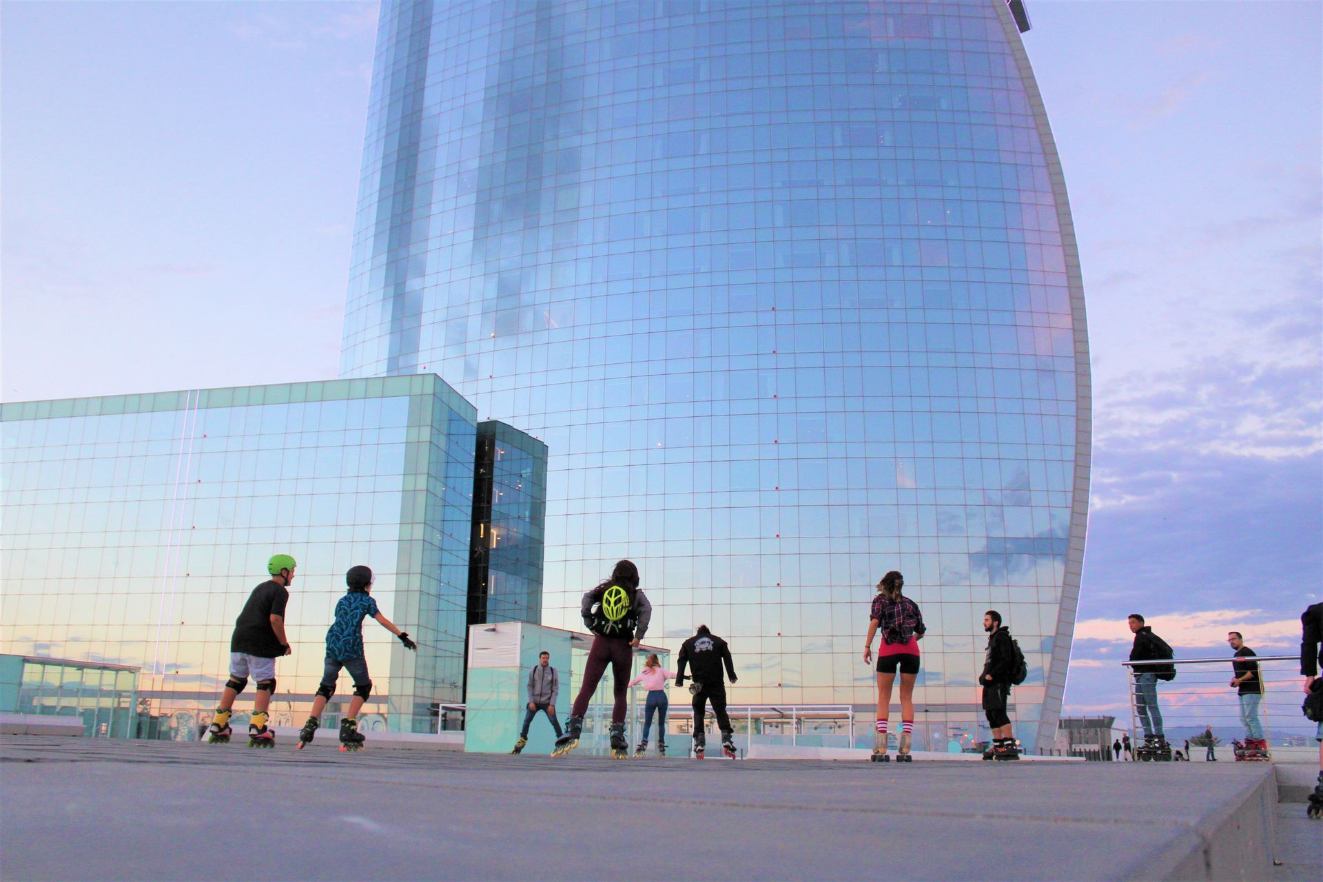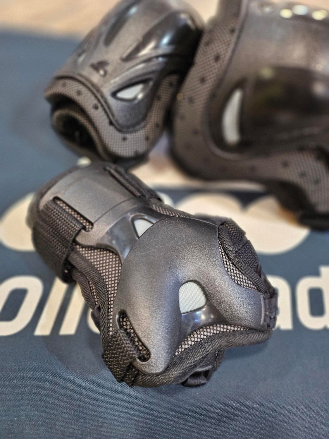 ¡Claro! Casco rodilleras y muñequeras.